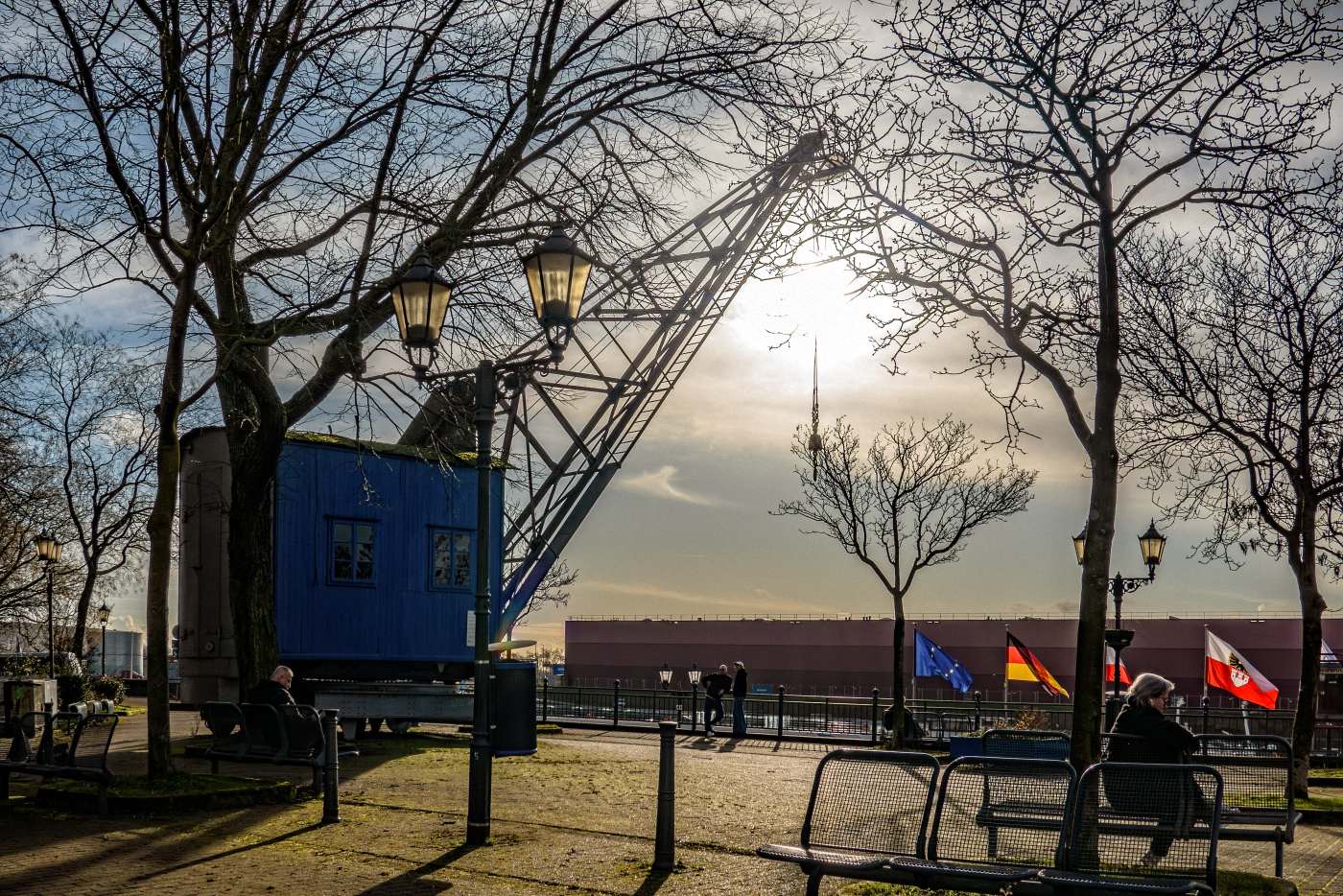 Von hier führt der Weg weiter am Hafen entlang auf den Hafenmund und die Friedrich-Ebert-Brücke zu.