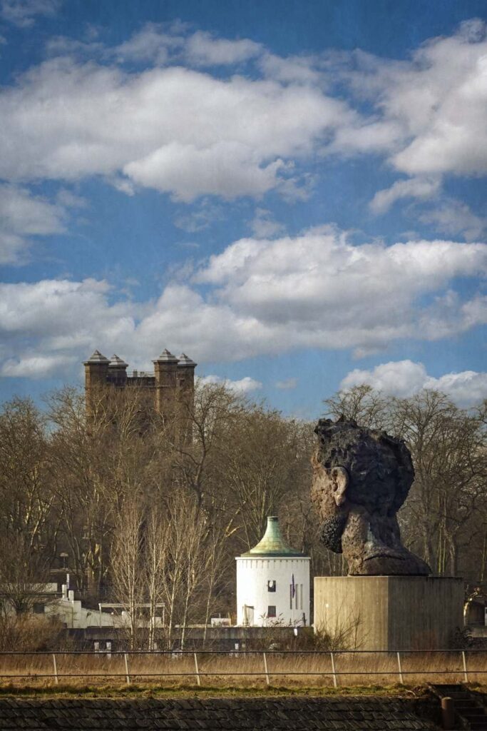 Die monumentale Skulptur von Markus Lüpertz entstand anlässlich des Hafenjubiläums und setzt einen bewussten Kontrast zur gewachsenen Umgebung.
